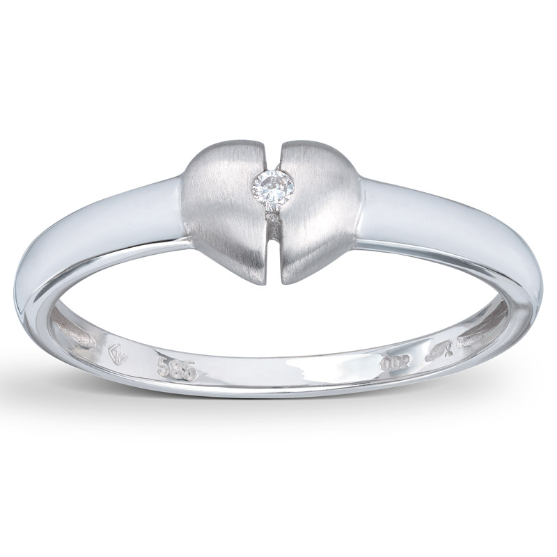 Ring i hvitt gull hjerte og diamant