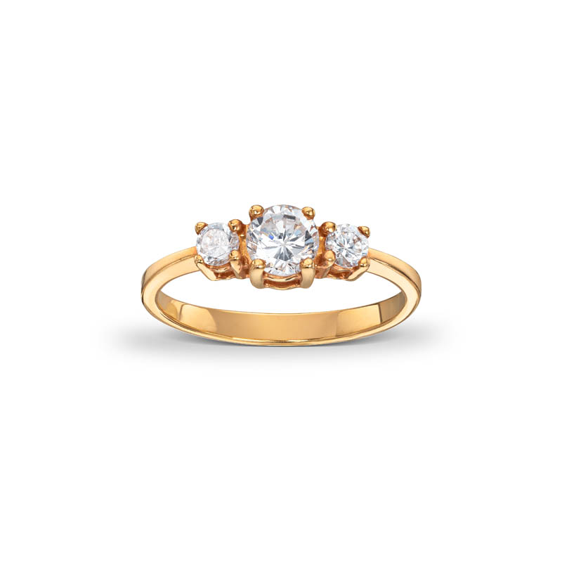 3-stensring i gull med zirkonia