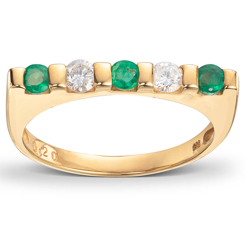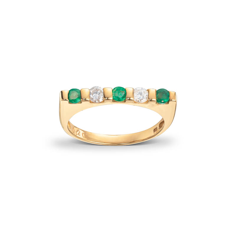 Ring i 14 kt (585) gult gull med smaragder og diamanter