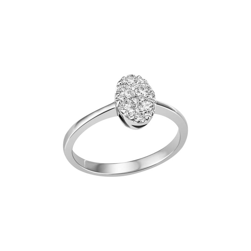 Ring i hvitt gull med sammensatte diamanter i oval form