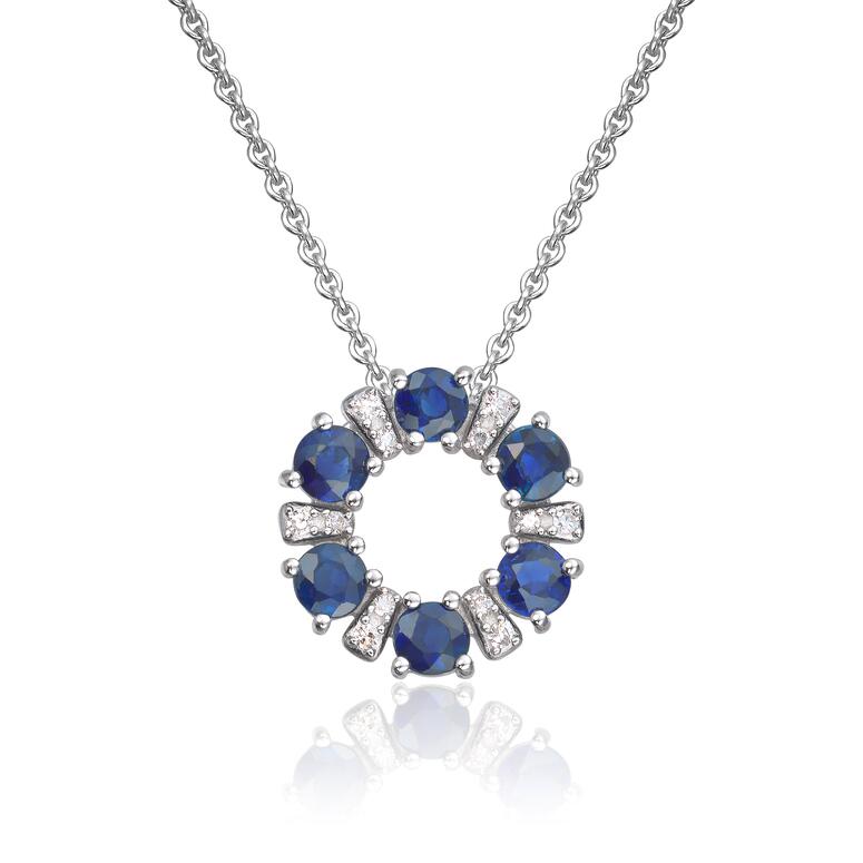Sirkel i 14kt (585) hvitt gull med safirer og diamanter 0,02ct