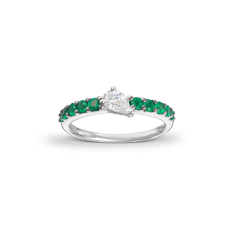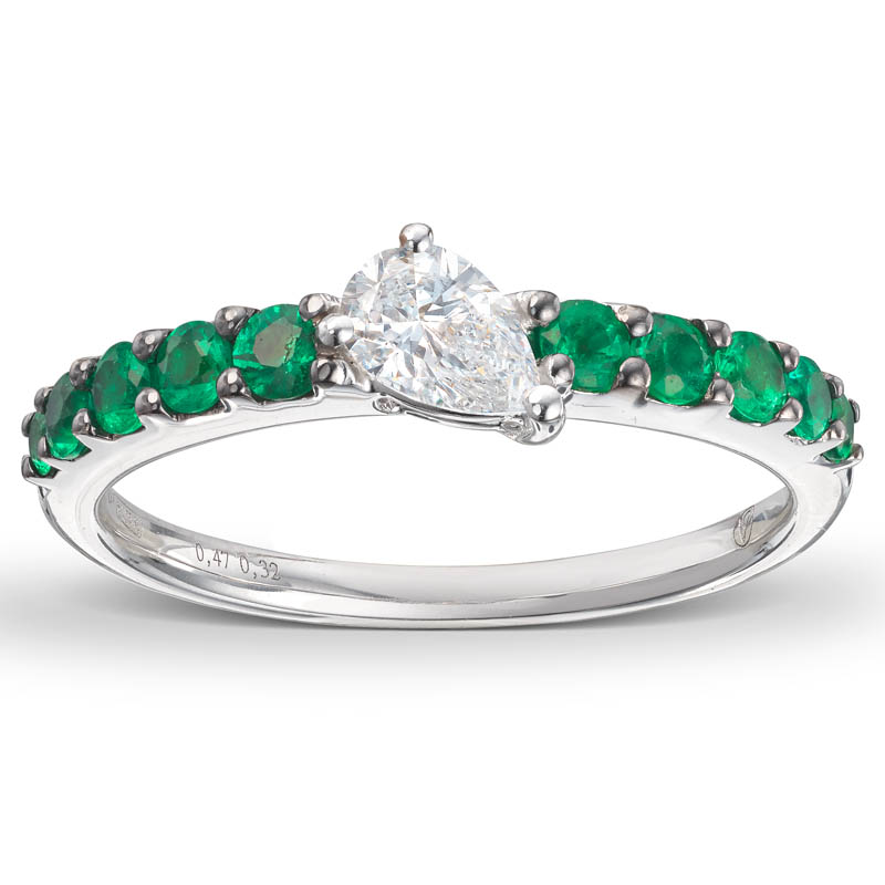 Smaragd rekkering i hvitt gull med 1 stk dråpeformet diamant
